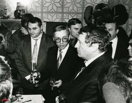 6 февраля 2026 г.Год: 1994водкаЖириновскийзаводВладимир Вольфович на ликёро-водочном заводе во время презентации водки "Жириновский"